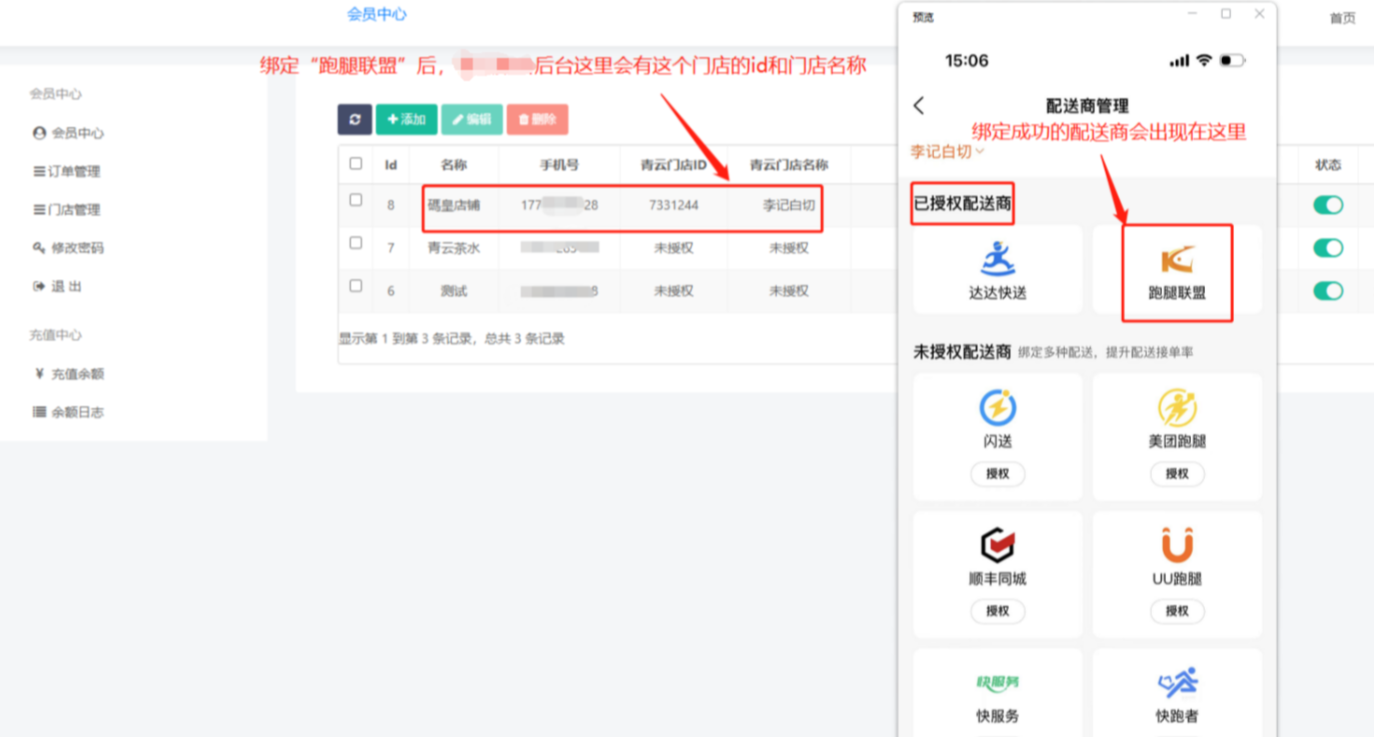 5.商家在青云绑定“跑腿联盟”这个配送商(商家操作)