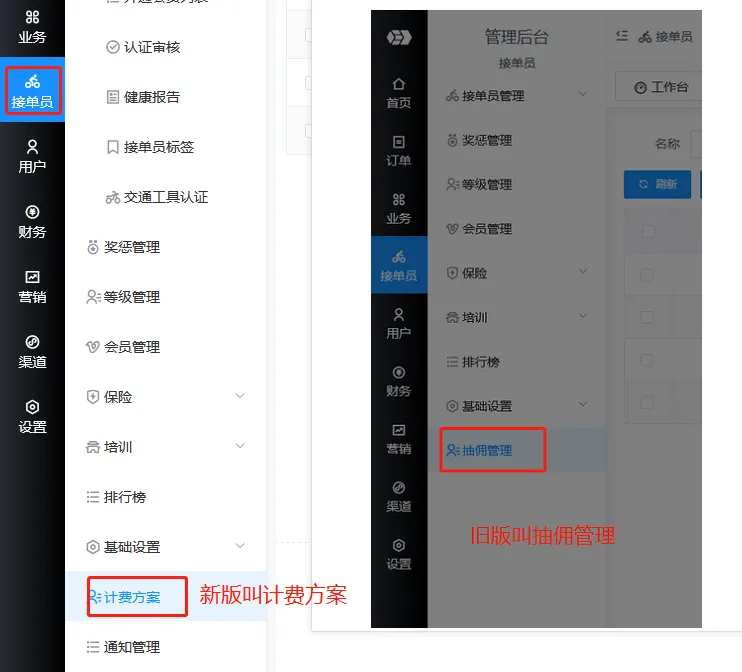 说明:抽佣方式 码科旧版叫做“抽佣管理”,新版 叫做“计费方案”